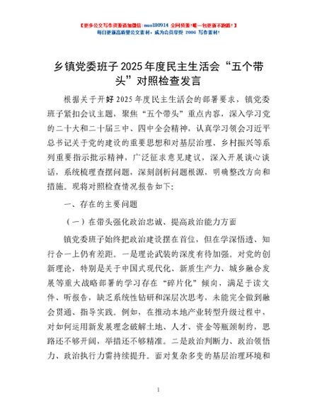 / 乡镇党委班子2025年度民主生活会“五个带头”对照检查发言_002