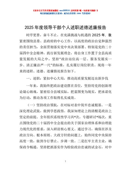 / 2025年度领导干部个人述职述德述廉报告