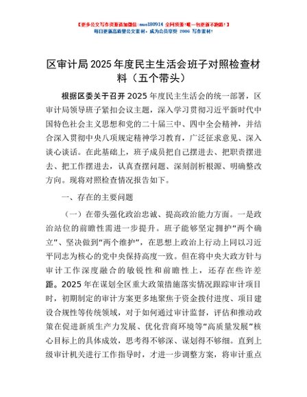 / 区审计局2025年度民主生活会班子对照检查材料(五个带头)