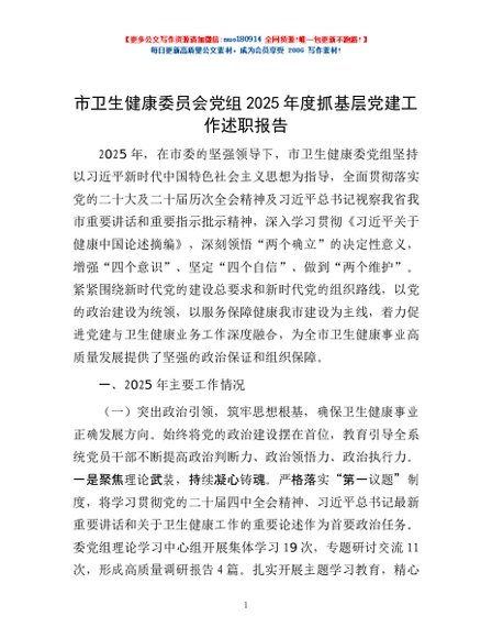 / 市卫生健康委员会党组2025年度抓基层党建工作述职报告