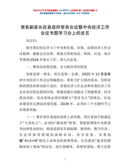 / 常务副县长在县政府常务会议暨中央经济工作会议专题学习会上的发言