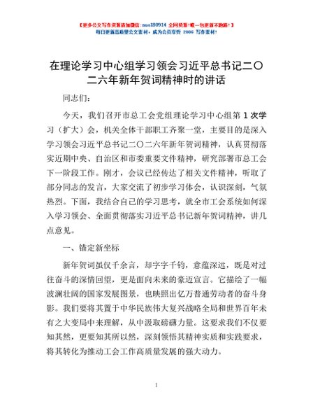 / 在理论学习中心组学习领会习近平总书记二〇二六年新年贺词精神时的讲话