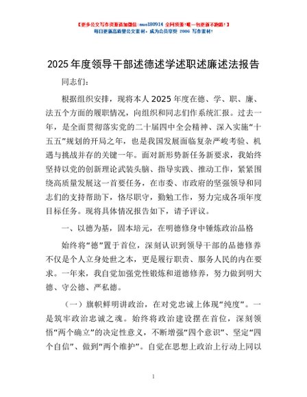 / 2025年度领导干部述德述学述职述廉述法报告