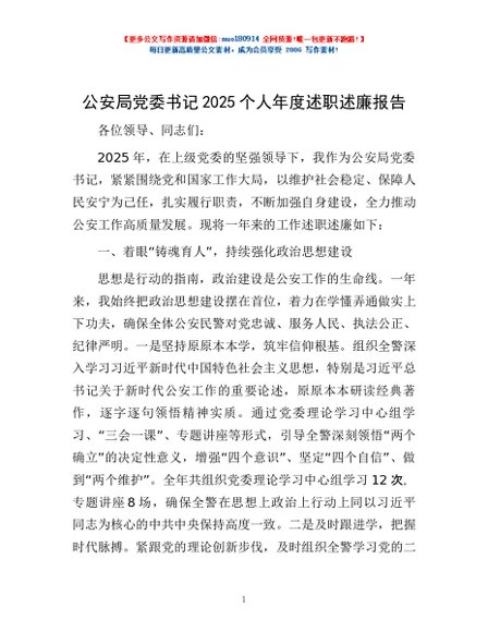 / 公安局党委书记2025个人年度述职述廉报告