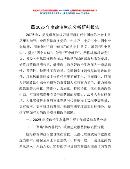 / 局2025年度政治生态分析研判报告
