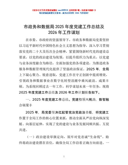 / 市政务和数据局2025年度党建工作总结及2026年工作谋划