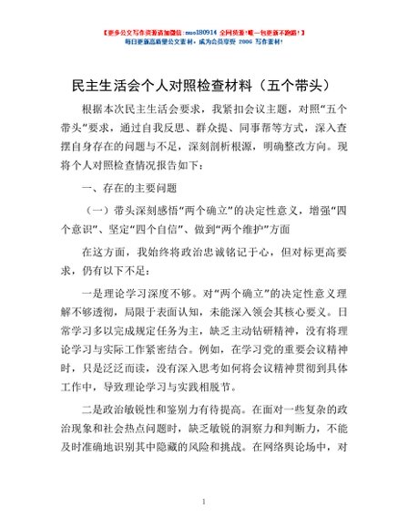 / 民主生活会个人对照检查材料(五个带头)