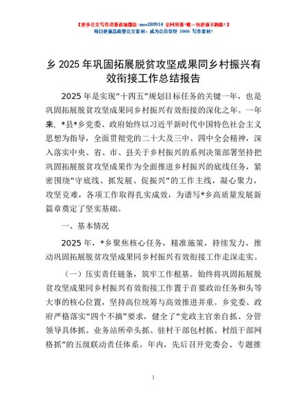 / 乡2025年巩固拓展脱贫攻坚成果同乡村振兴有效衔接工作总结报告