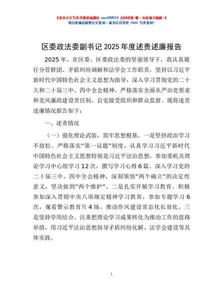 / 区委政法委副书记2025年度述责述廉报告