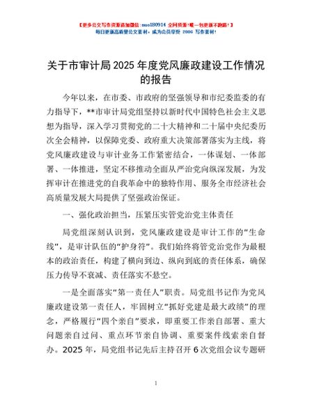 / 关于市审计局2025年度党风廉政建设工作情况的报告