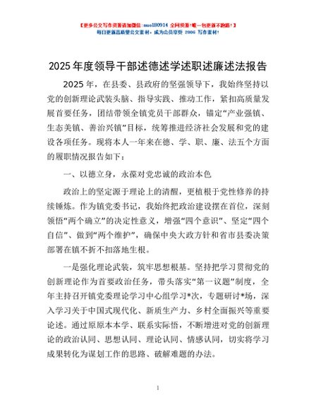 / 2025年度领导干部述德述学述职述廉述法报告