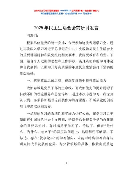 公司党委班子成员民主生活会会前专题学习会研讨发言材料