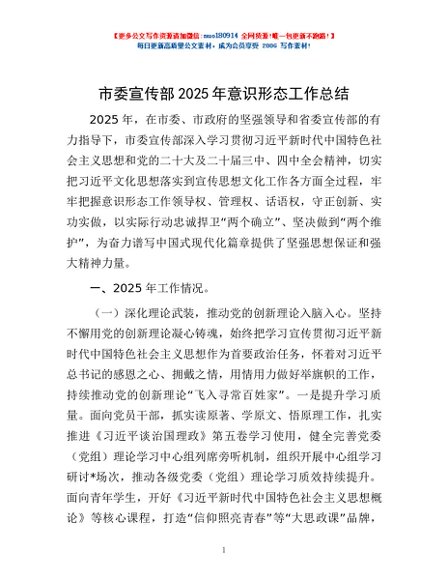 / 市委宣传部2025年意识形态工作总结