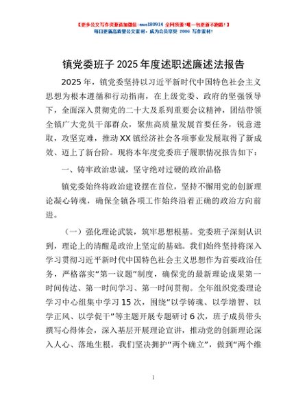/ 镇党委班子2025年度述职述廉述法报告