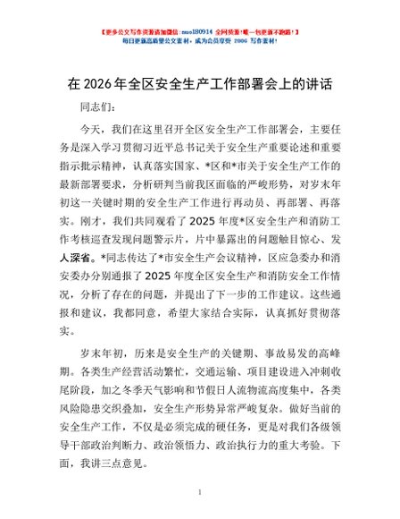 / 在2026年全区安全生产工作部署会上的讲话