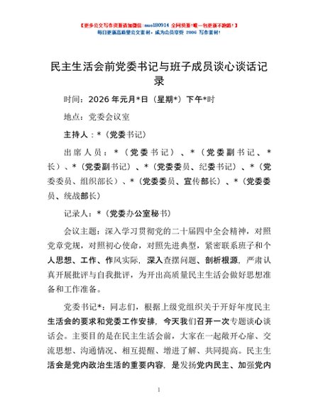 / 民主生活会前党委书记与班子成员谈心谈话记录
