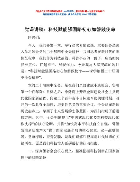 / 党课讲稿:科技赋能强国路 初心如磐践使命