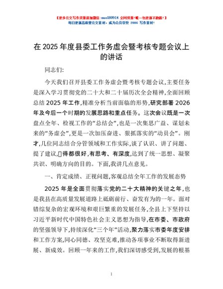 / 在2025年度县委工作务虚会暨考核专题会议上的讲话