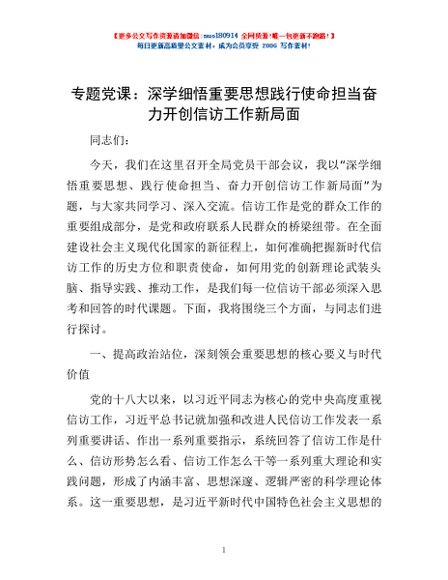 / 专题党课:深学细悟重要思想 践行使命担当 奋力开创信访工作新局面