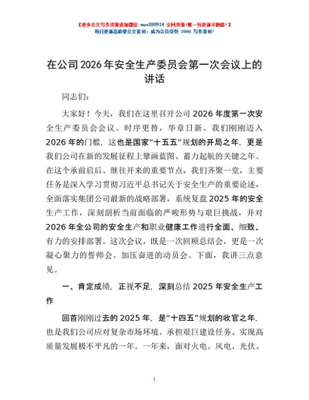 / 在公司2026年安全生产委员会第一次会议上的讲话