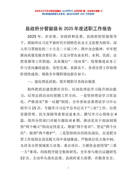 / 县政府分管副县长2025年度述职工作报告