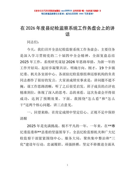 / 在2026年度县纪检监察系统工作务虚会上的讲话