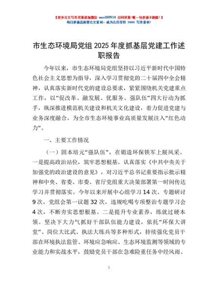 / 市生态环境局党组2025年度抓基层党建工作述职报告