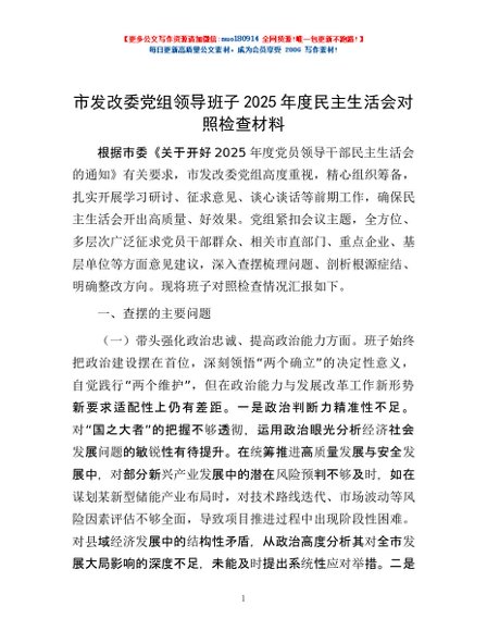 / 市发改委党组领导班子2025年度民主生活会对照检查材料