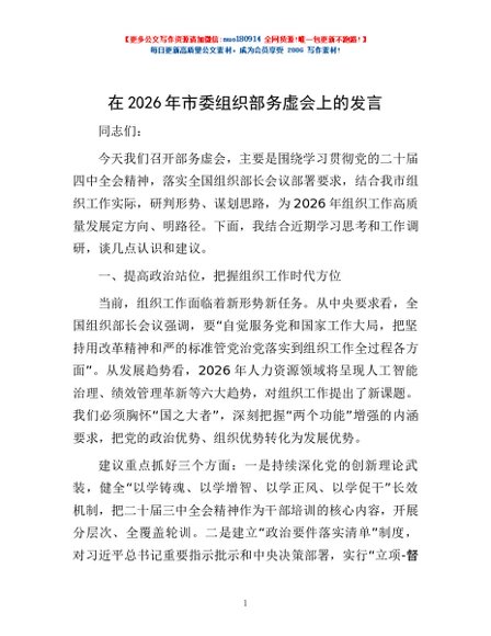/ 在2026年市委组织部务虚会上的发言