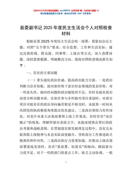 / 县委副书记2025年度民主生活会个人对照检查材料