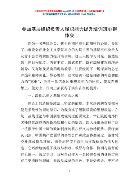 / 参加基层组织负责人履职能力提升培训班心得体会