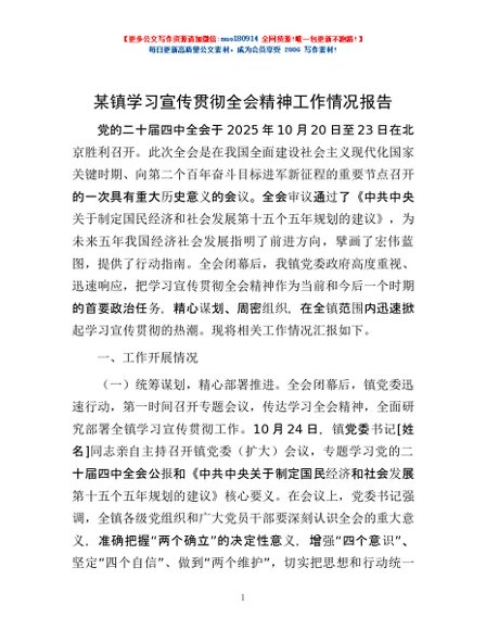/ 某镇学习宣传贯彻全会精神工作情况报告