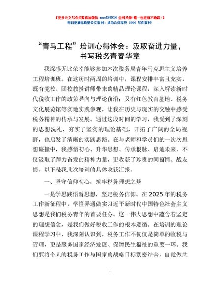 / “青马工程”培训心得体会:汲取奋进力量,书写税务青春华章