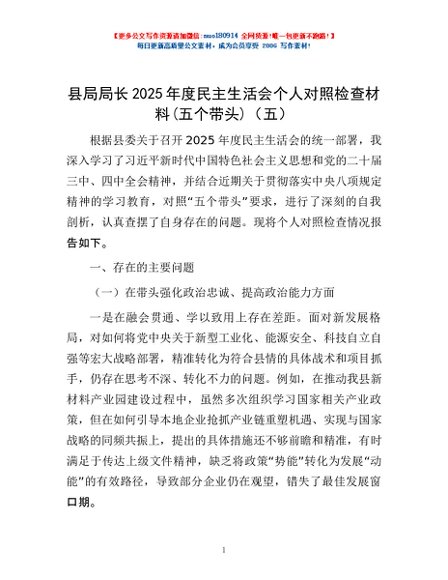 / 县局局长2025年度民主生活会个人对照检查材料(五个带头)(五)