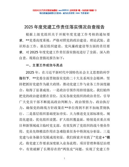 / 2025年度党建工作责任落实情况自查报告