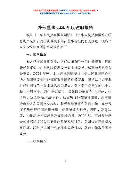 / 外部董事2025年度述职报告