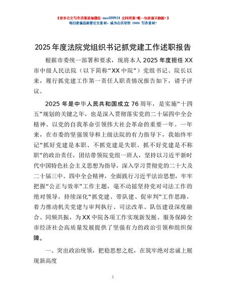 / 2025年度法院党组织书记抓党建工作述职报告