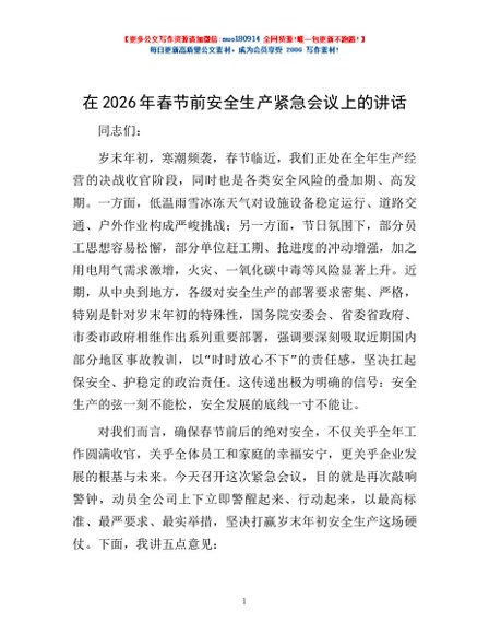 / 在2026年春节前安全生产紧急会议上的讲话