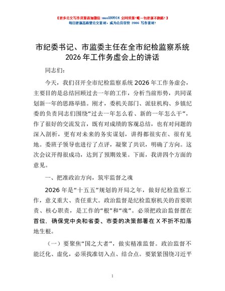 / 市纪委书记、市监委主任在全市纪检监察系统2026年工作务虚会上的讲话