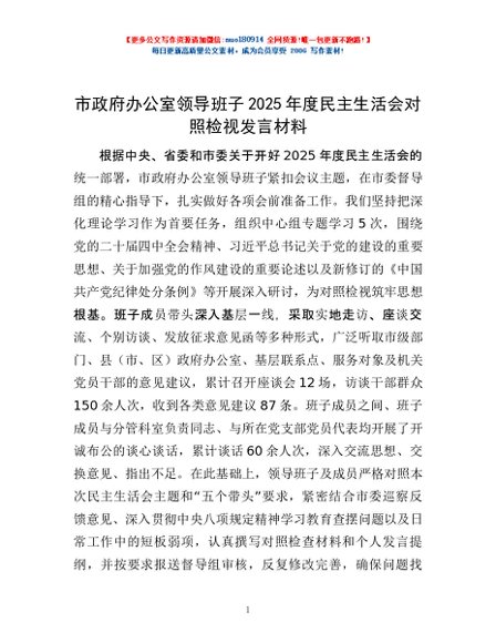 / 市政府办公室领导班子2025年度民主生活会对照检视发言材料