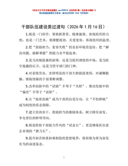 / 干部队伍建设类过渡句(2026年1月16日)