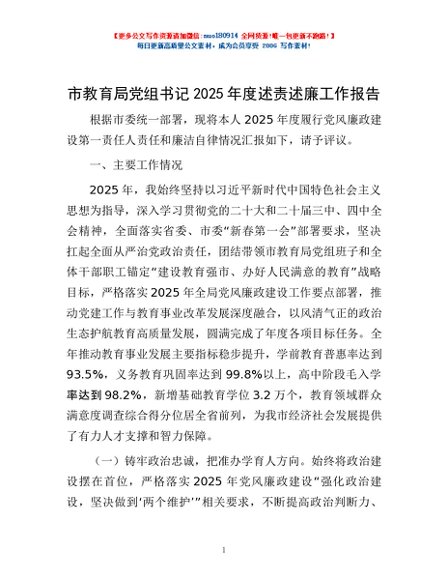 / 市教育局党组书记2025年度述责述廉工作报告
