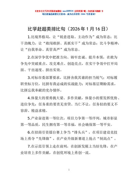 / 比学赶超类排比句(2026年1月16日)
