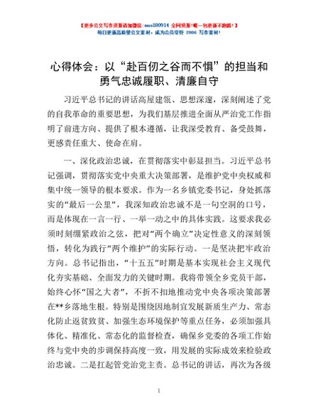 / 心得体会:以“赴百仞之谷而不惧”的担当和勇气忠诚履职、清廉自守