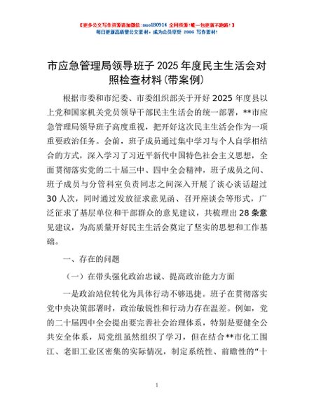 / 市应急管理局领导班子2025年度民主生活会对照检查材料(带案例)