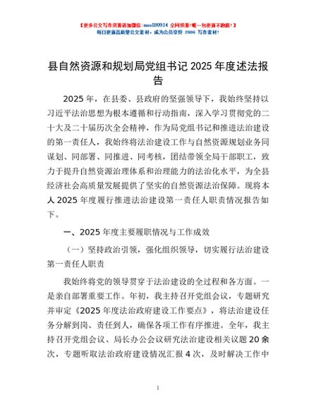 / 县自然资源和规划局党组书记2025年度述法报告
