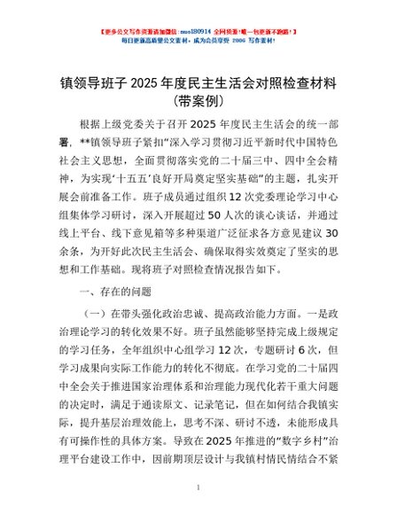 / 镇领导班子2025年度民主生活会对照检查材料(带案例)