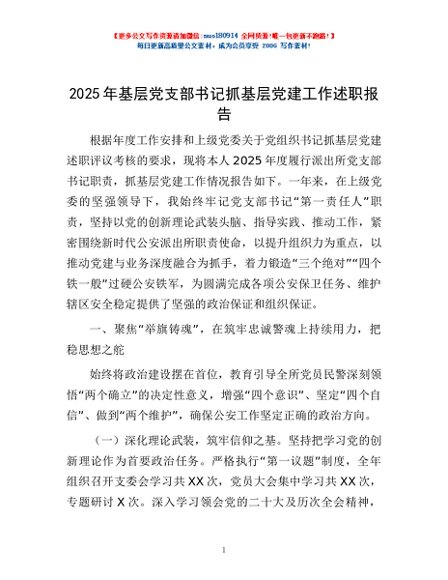/ 2025年基层党支部书记抓基层党建工作述职报告
