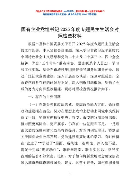 / 国有企业党组书记2025年度专题民主生活会对照检查材料
