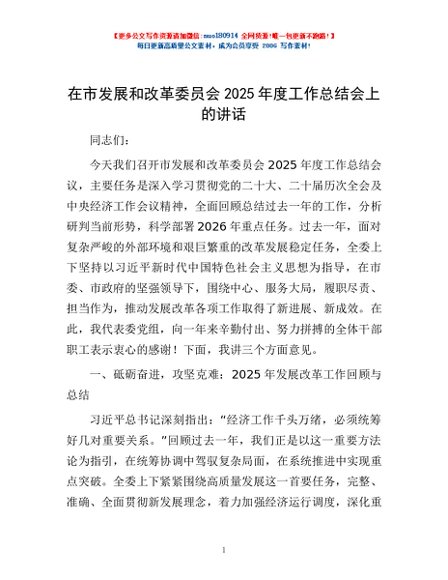 / 在市发展和改革委员会2025年度工作总结会上的讲话